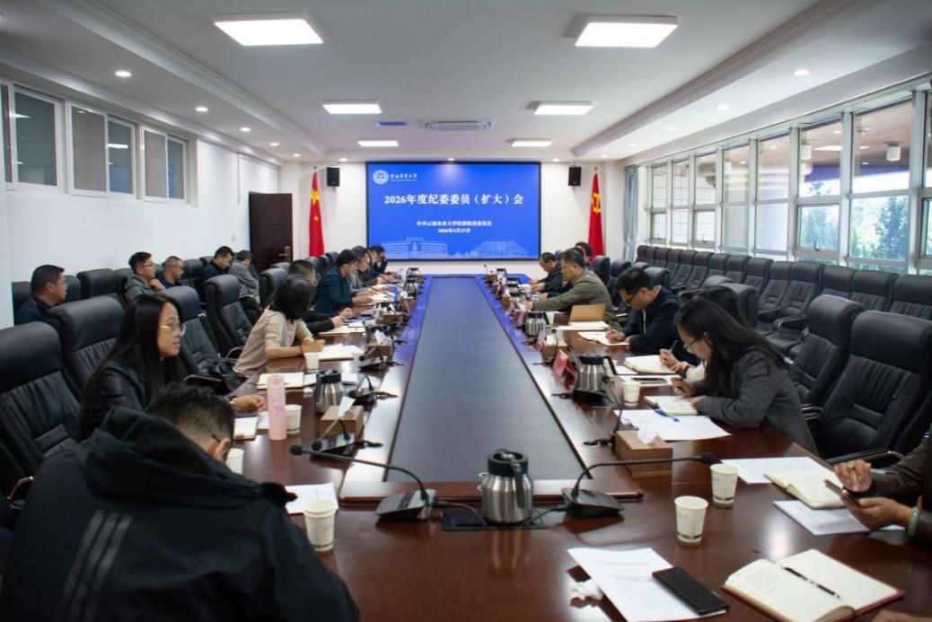 近日,学校在耕读楼301会议室召开2026年纪委委员(扩大)会,研究部署2026年纪检监察工作。会议由党委委员、纪委书记、监察专员陈文主持。纪委委员,二级党委纪委书记、纪检委员,专职纪检监察干部30余人参加会议。