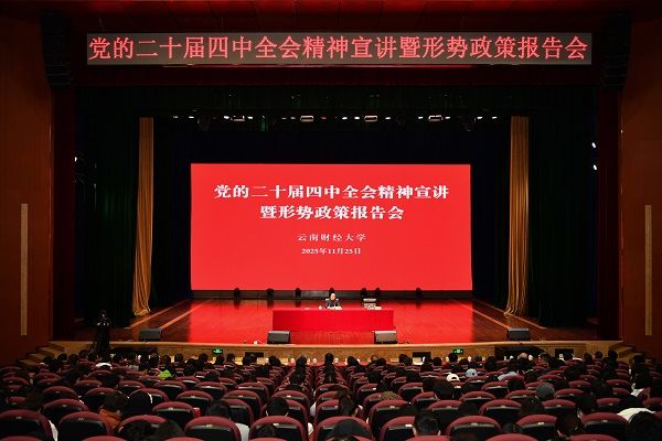 11月25日,省委宣讲团成员,省委常委、省纪委书记、省监委主任冯志礼到云南财经大学宣讲党的二十届四中全会精神,并为师生代表作形势政策报告。